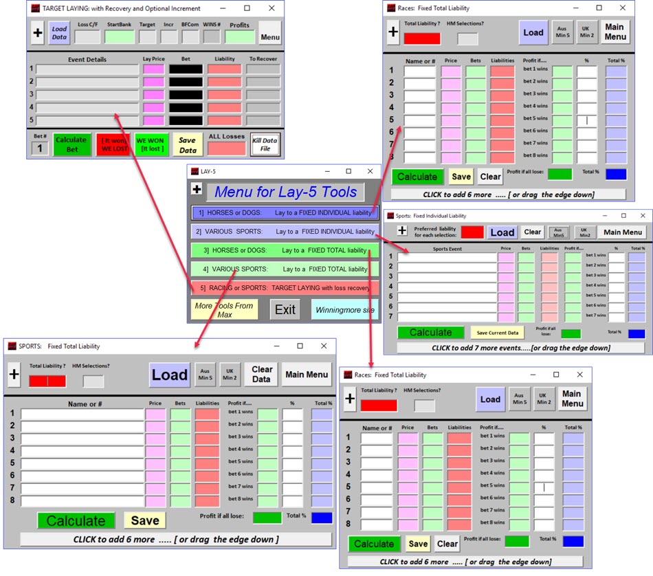 These 5 tools are all for Lay staking, and you will mostly not use all 5, you will find your favourite two or three.